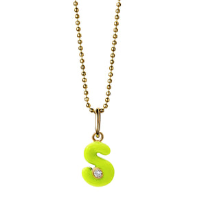 Sweet little letter of your choice with a sparkling diamond accent and colorful hand-applied enamel. Available as a necklace or solo charm. Please specify your letter in the Notes section of your order.